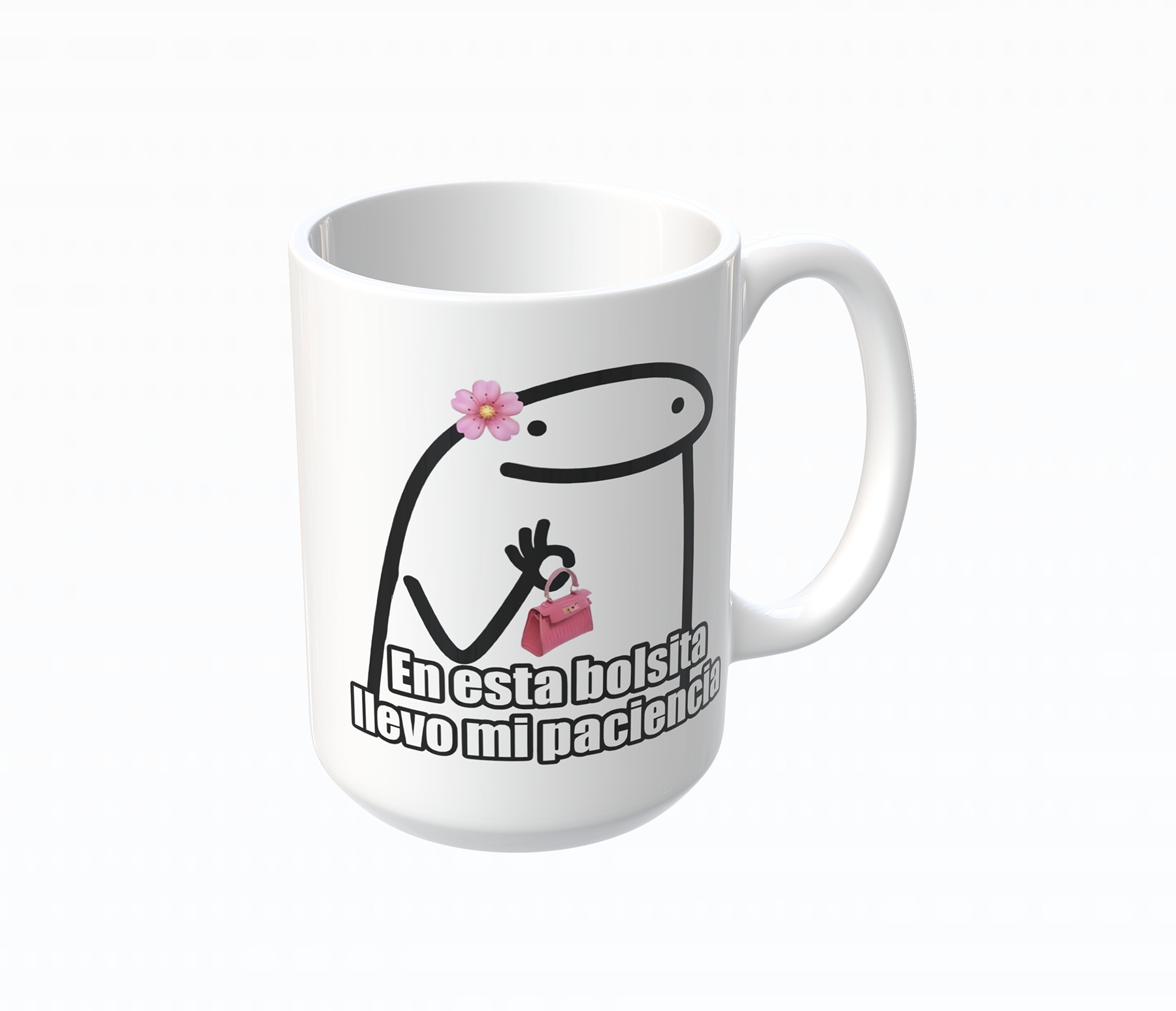 Taza Grande Flork En esta Bolsita llevo mi Paciencia | imagen | frase divertida I meme | Cerámica Blanca 15 oz | Para Café o té