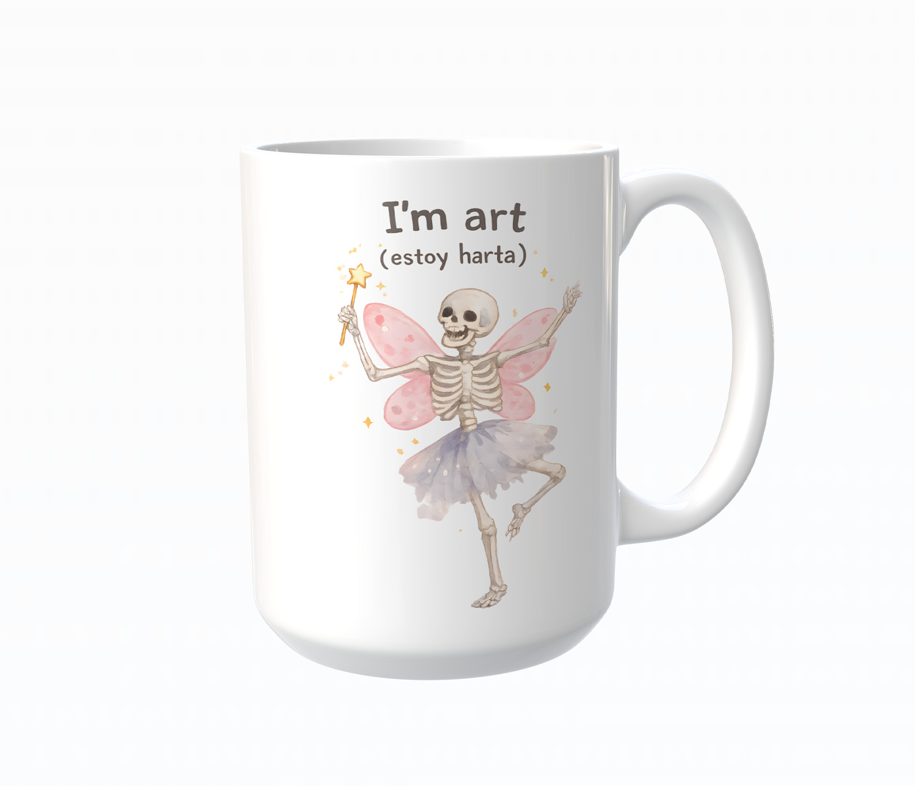 Taza Grande I´m Art, (estoy harta) | imagen | calaca I frase divertida | Cerámica Blanca 15 oz | Para Café o té